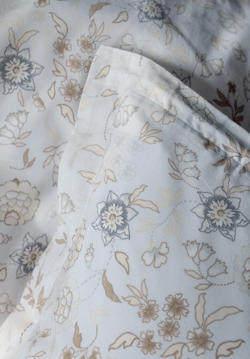 Liva bäddset från Borås Cotton strålar av romantik och somrig lätthet. Det blommiga mönstret i skira blåa nyanser vilar mjukt mot en ljus botten och skapar en harmonisk och drömsk atmosfär i sovrummet.