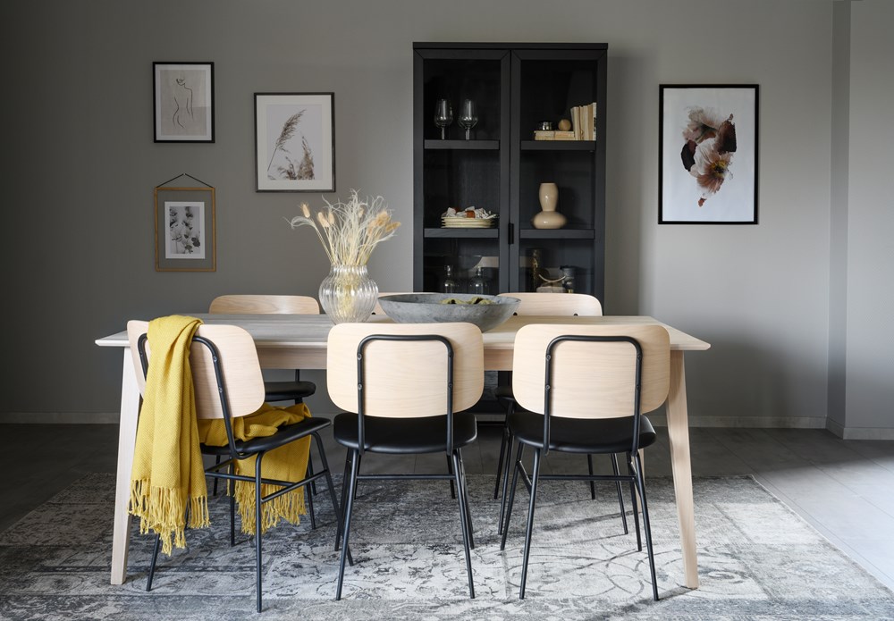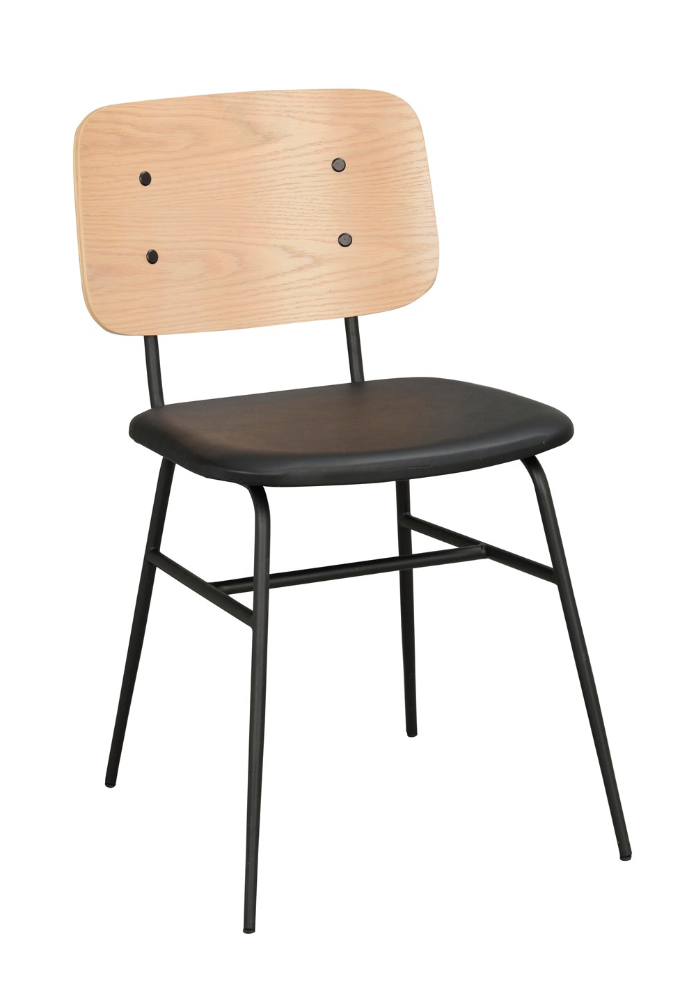 Brent stol i svart. Ryggbricka i ask och stoppad sits i konstläder. Stomme samt ben i rund profil där benen har en avsmalnande effekt. Snygg och stilsäker stol som ingår i vår serie Brent.