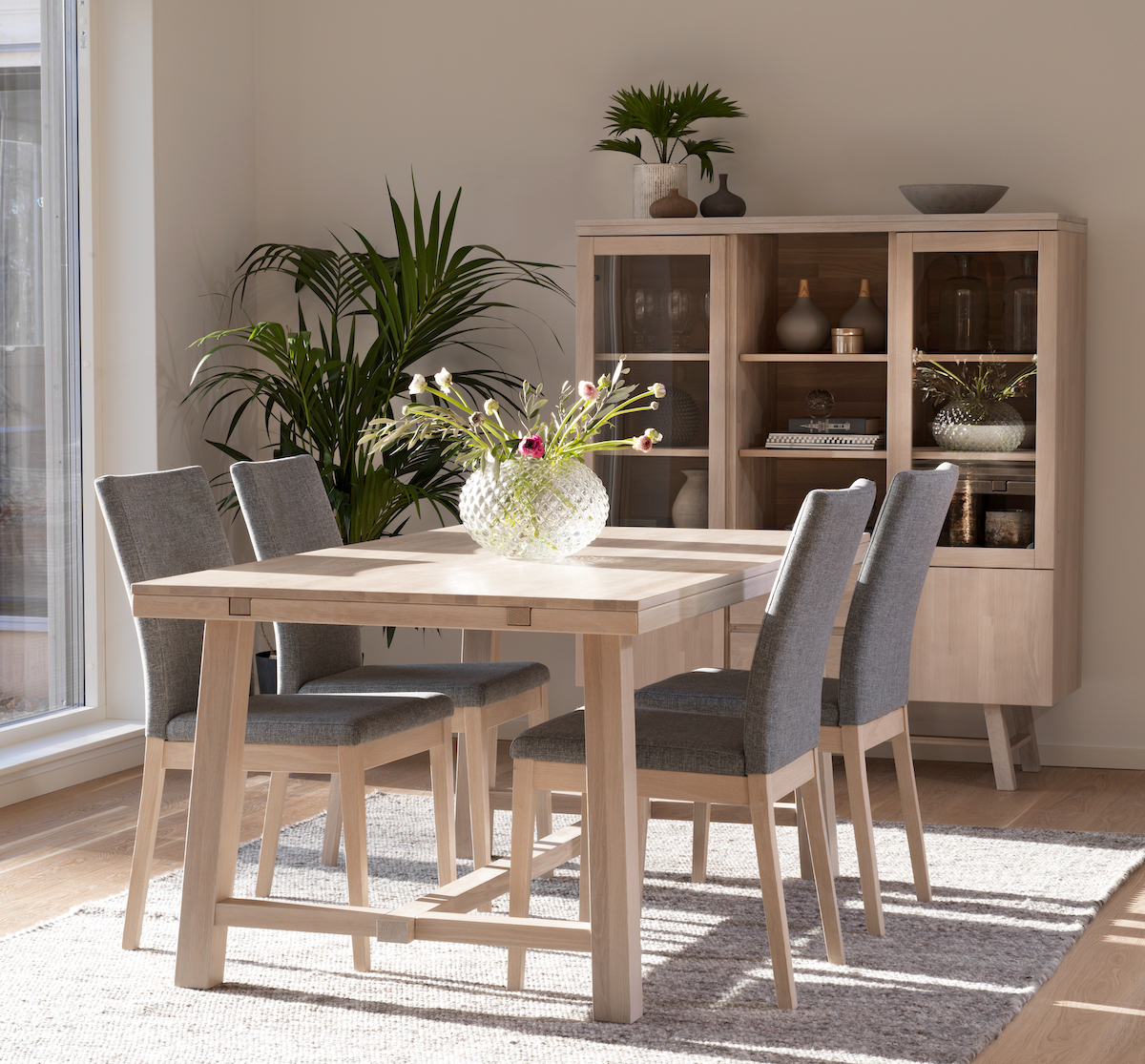 Just nu bjuder vi på frakten på den här produkten. Ange koden ROWICO2025 i kassan.Brooklyn matbord i klassisk design och i massiv vitpigmenterad ek. Bordet är i hög kvalitet och kan kompletteras med tilläggsskiva. Slät finish på skivan. Ingår i vår serie Brooklyn. Tänk på att! Oljebehandlade ytor ska behandlas med möbelolja innan den används och sedan regelbundet 2- 3 gånger per år. Detta gäller speciellt bordets toppskiva, för att bibehålla motståndskraft mot fläckar och repor. Innan inoljning av möbeln behöver ytan rengöras för att få bort smuts och fett, en trärengöring avsedd för ändamålet bör användas.