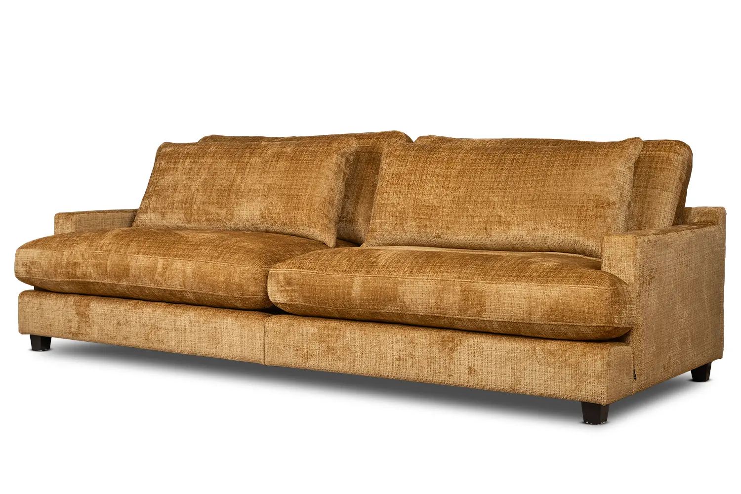 Stommen är tillverkad av massivt trä i alla bärande delar, vilket ger en stabil konstruktion och lång livslängd. Sittplymåerna består av högelastiskt, formskuret kallskum (35 kg, N120) omslutet av en mjuk mix av silikoniserad fiber och fjäder – en perfekt balans mellan stöd och komfort. Plymåerna är vändbara för ökad hållbarhet (gäller ej läder).