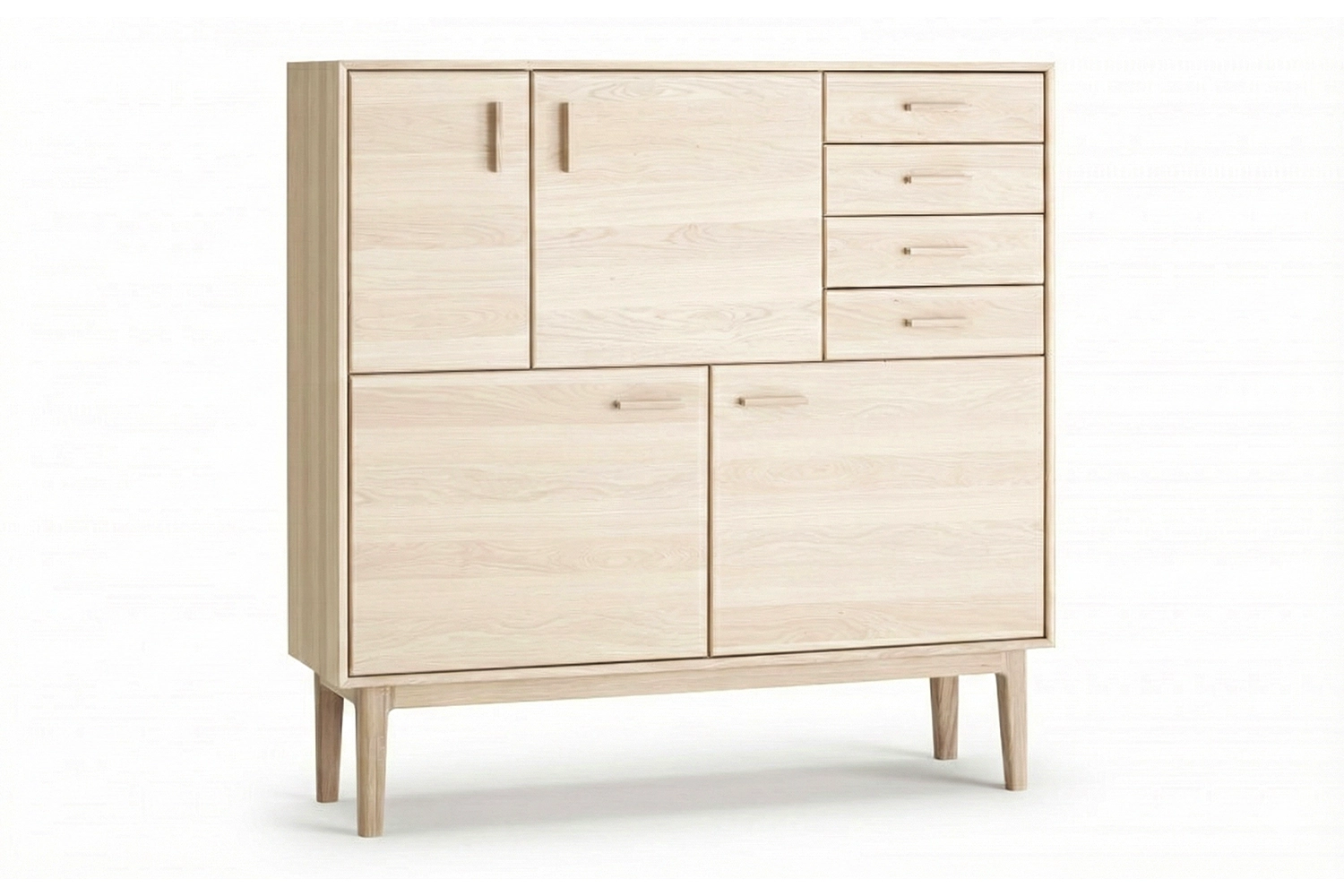 CASØ 700 Highboard är mer än bara en förvaringsmöbel; det är ett hantverk som definieras av rena linjer och mjuka övergångar. Designen bygger på en spännande balans mellan mjukhet och stramhet, vilket ger möbeln ett modernt men tidlöst uttryck.