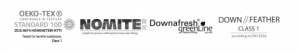 Certifikat och godkännanden: Öko Tex Standard 100, Nomite certifikat, Downafresh Greenline.