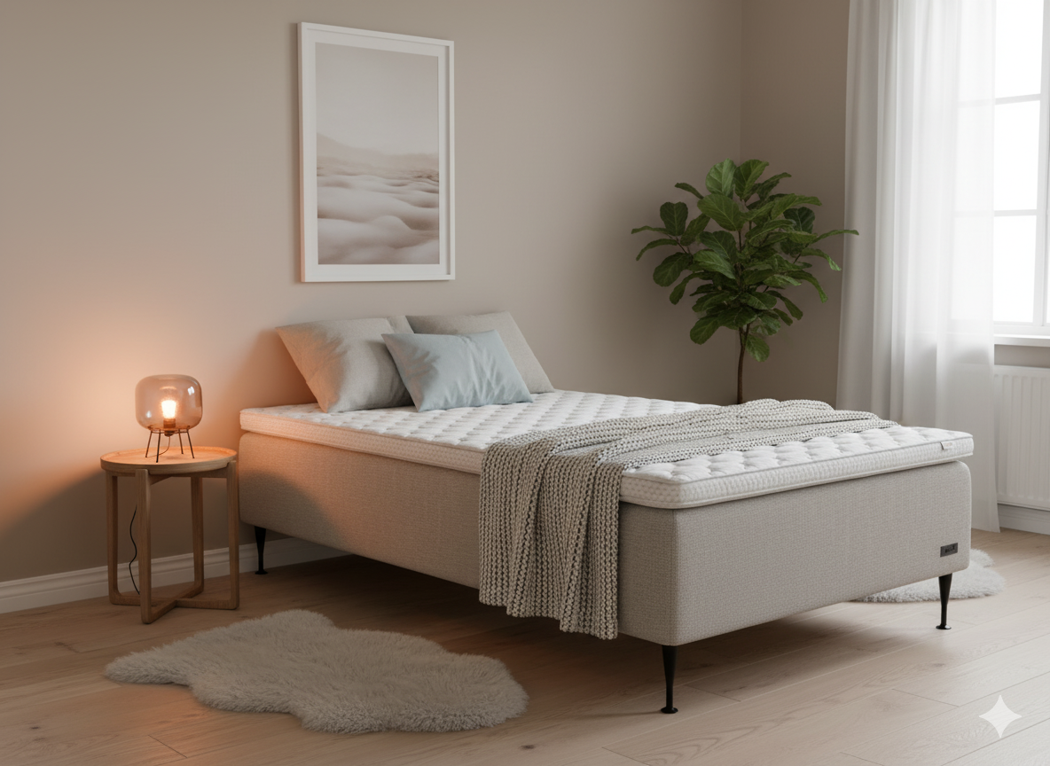 En säng för dig som vill kombinera modern elegans med tidlös kvalitet – där varje detalj är skapad för att ge dig en bättre natts sömn.