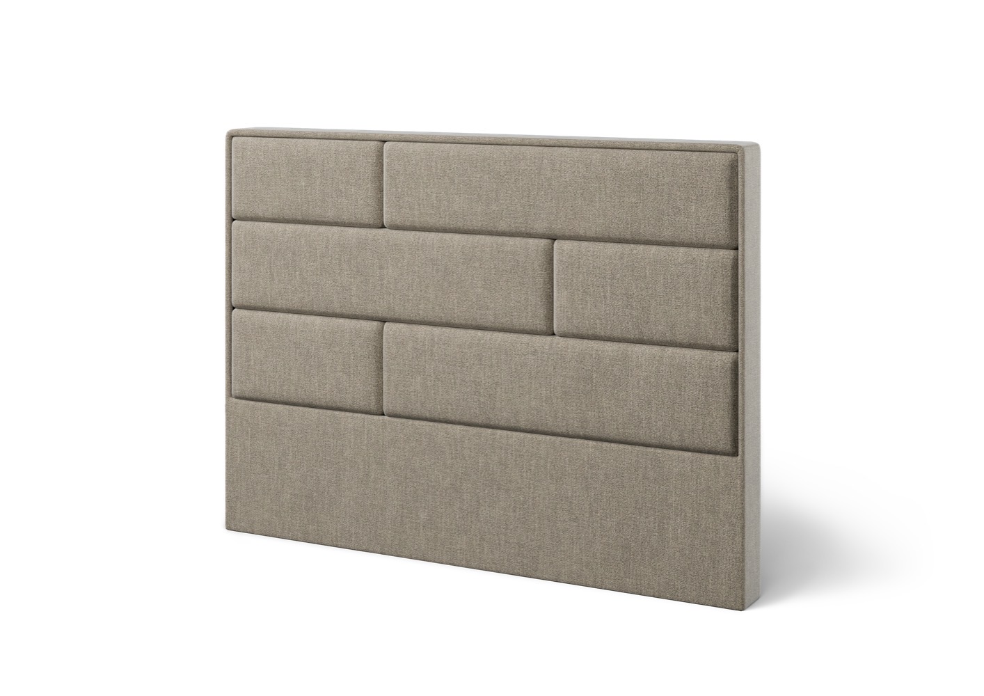 Stilren tygklädd huvudgavel med grafisk paneldesign. Finns i flera tyger och färger för en personlig och ombonad sovrumskänsla.