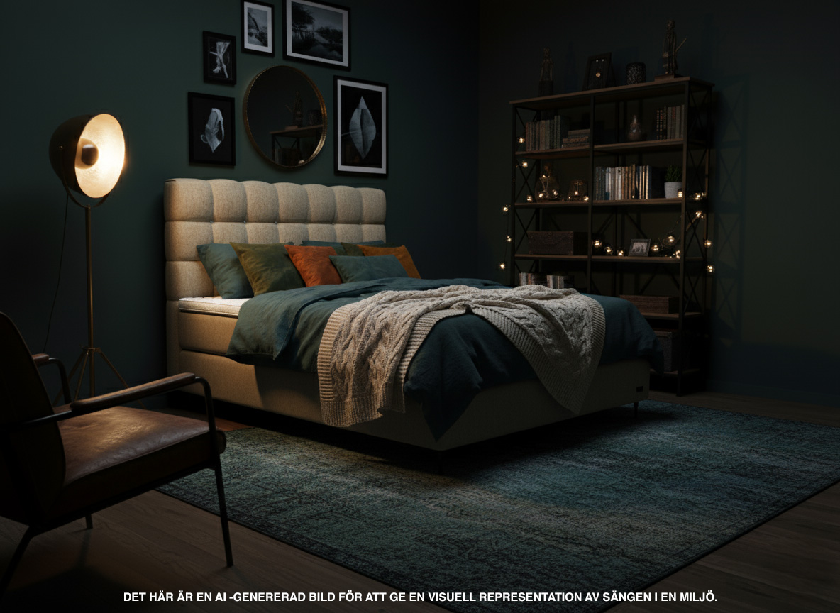 Elegans kontinentalsäng har en totalhöjd på hela 70 cm, vilket ger en elegant hotellkänsla och gör den till ett imponerande inslag i sovrummet. Kombinationen av exklusiva material och väl genomtänkt konstruktion skapar en säng som inte bara är vacker att se på – den bjuder också på en sömnupplevelse utöver det vanliga.