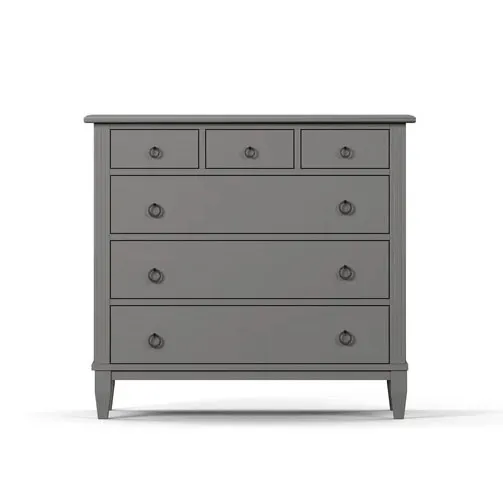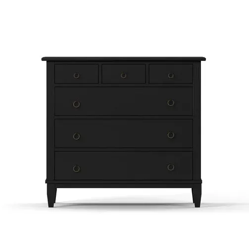 En rymlig Stockholm byrå perfekt för förvaring av kläder, idealisk för placering i sovrummet eller hallen. Byrån är utrustad med tre små lådor och tre stora lådor, och finns tillgänglig i färgerna Whitewash, Grey och Black