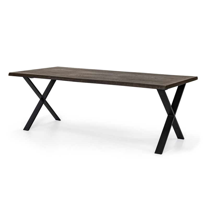 Matbord i rökt eller oljad vildek och svarta metallben med härlig rustik känsla.