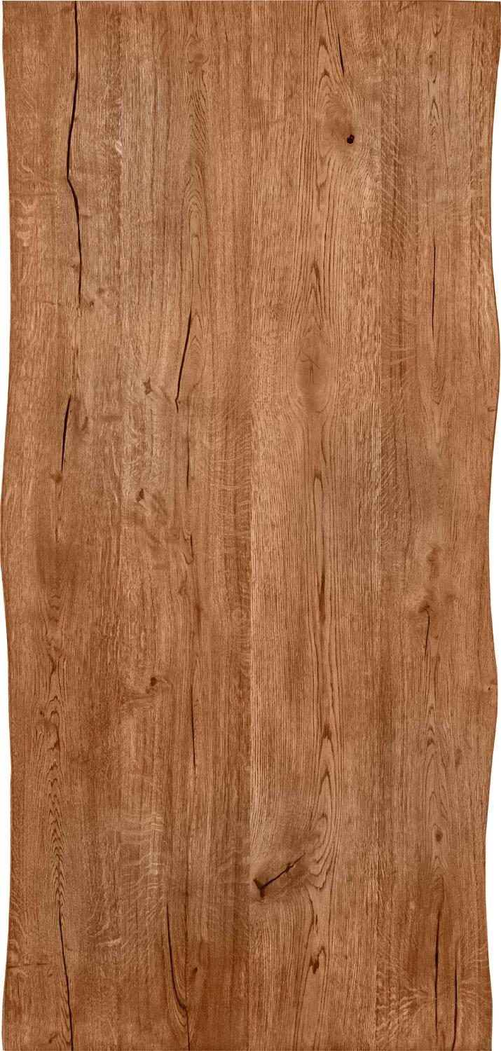 Bordsskivan har naturligt formade massiva kanter med ett 4 mm tjockt topplager av massiv vildek på spånskiva.