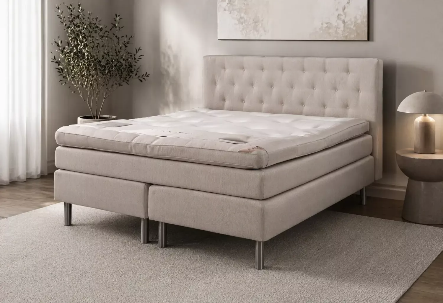 Lumi Premium Kontinental är framtagen för dig som vill ha hotellkänsla hemma. Den dubbelfjädrande konstruktionen tillsammans med noggrant utvalda material ger en säng som både känns mjuk, stabil och exklusiv – natt efter natt.
