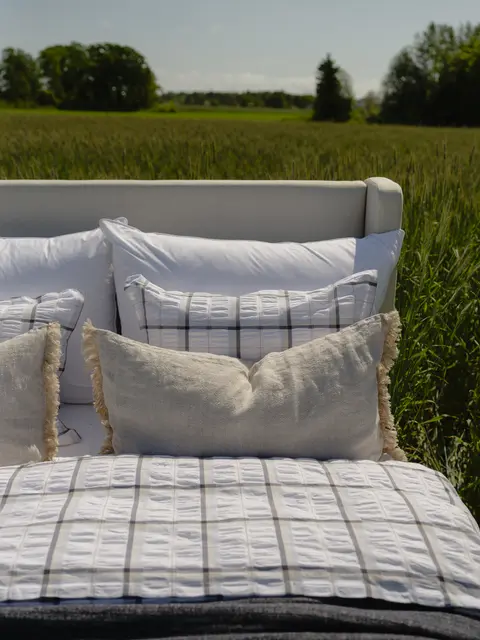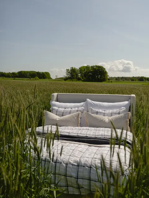 Det rutiga mönstret ger Nox ett tryggt och välbekant uttryck, samtidigt som den bredare kreppningen tillför en modern och levande textur. Ett bäddset som passar lika bra i lantliga miljöer som i mer avskalade, moderna sovrum.