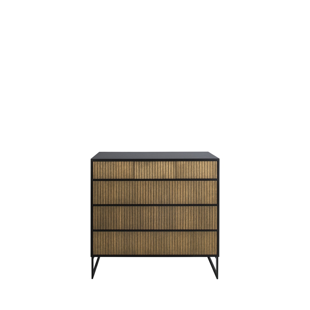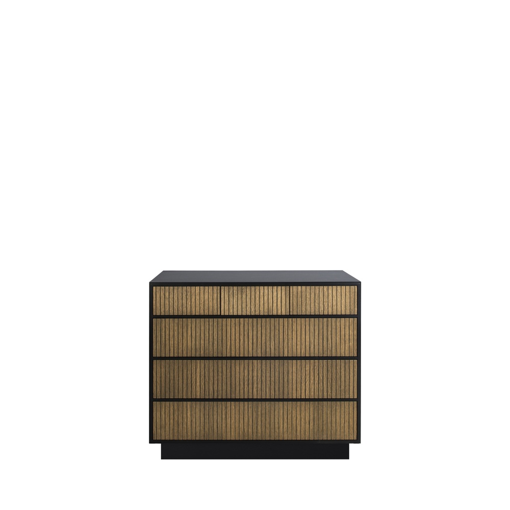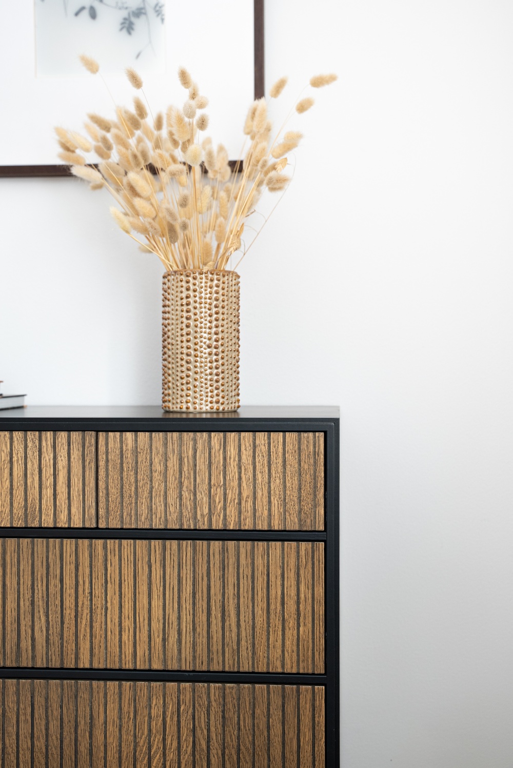 Line byrå i bränd valnöt med benstativ eller sockel. Välj mellan svart eller vit stomme.