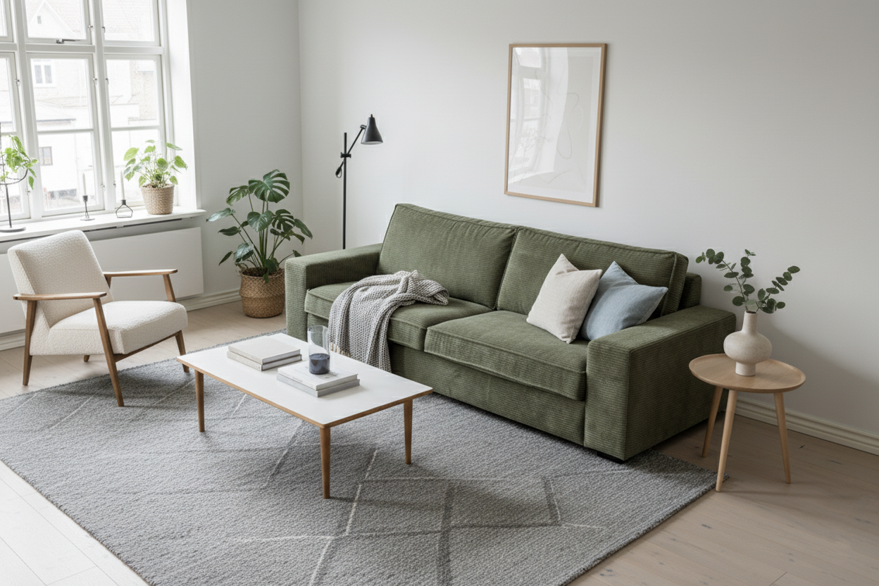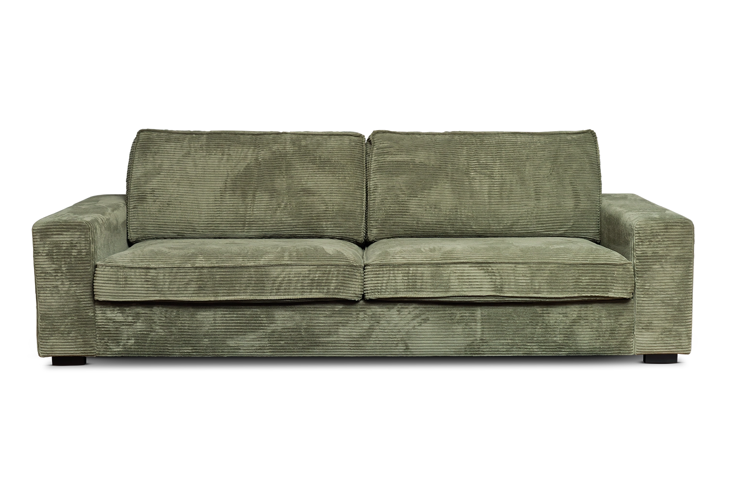 Mira är en modern och stilren soffa klädd i ett mjukt, grönt bredspårigt manchestertyg som ger både karaktär och komfort. De raka linjerna och den robusta formen ger soffan ett tidlöst uttryck, samtidigt som manchesterns taktila struktur tillför värme och personlighet.