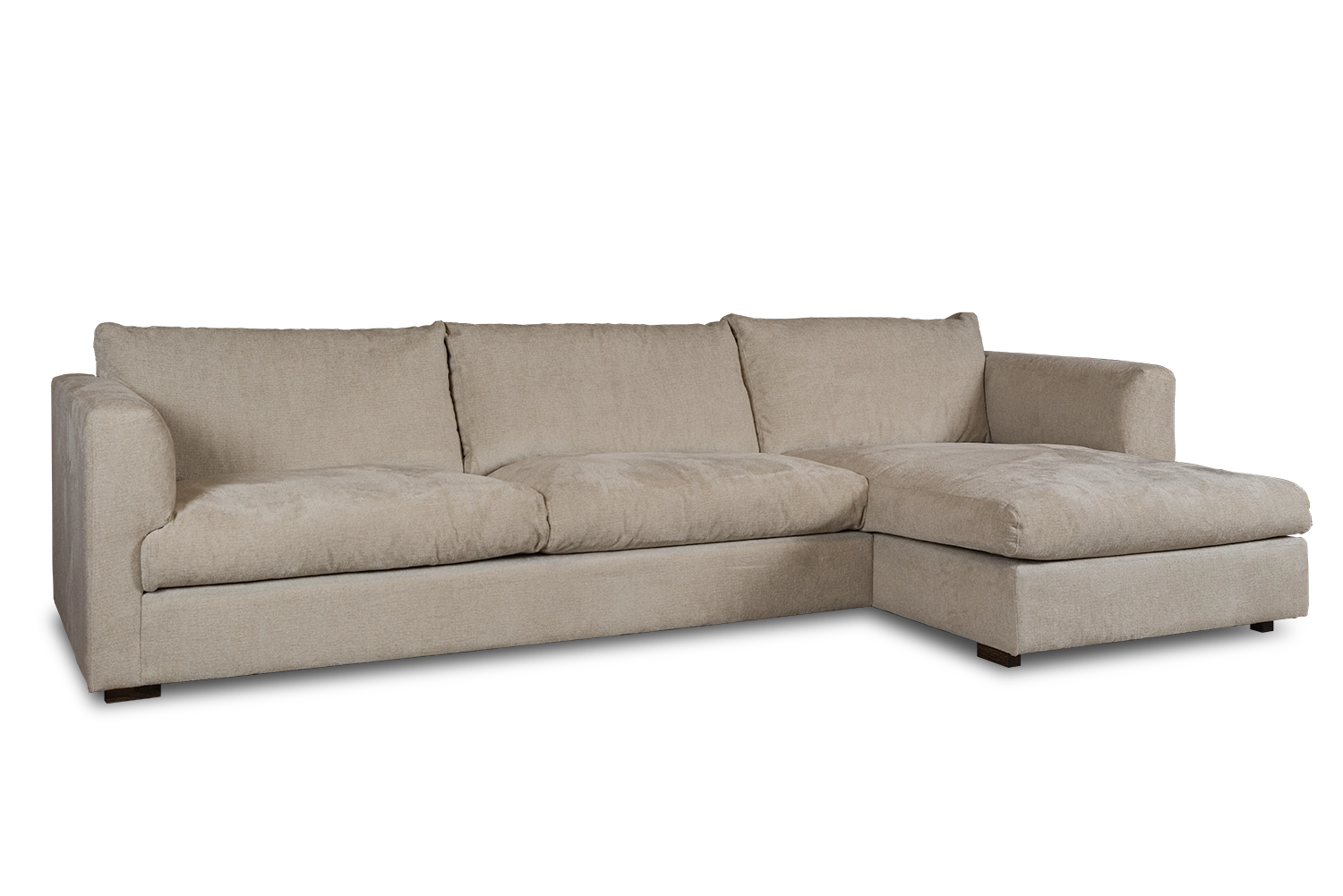 En inbjudande mittpunkt Lounge är en rejäl divansoffa som tar för sig utan att ta över. Den sandfärgade klädseln har en vacker struktur som ger soffan en levande och varm karaktär, samtidigt som den är enkel att matcha med din övriga inredning. De breda, moderna armstöden och de diskreta mörka träbenen ger soffan en tyngd och stabilitet som signalerar kvalitet.