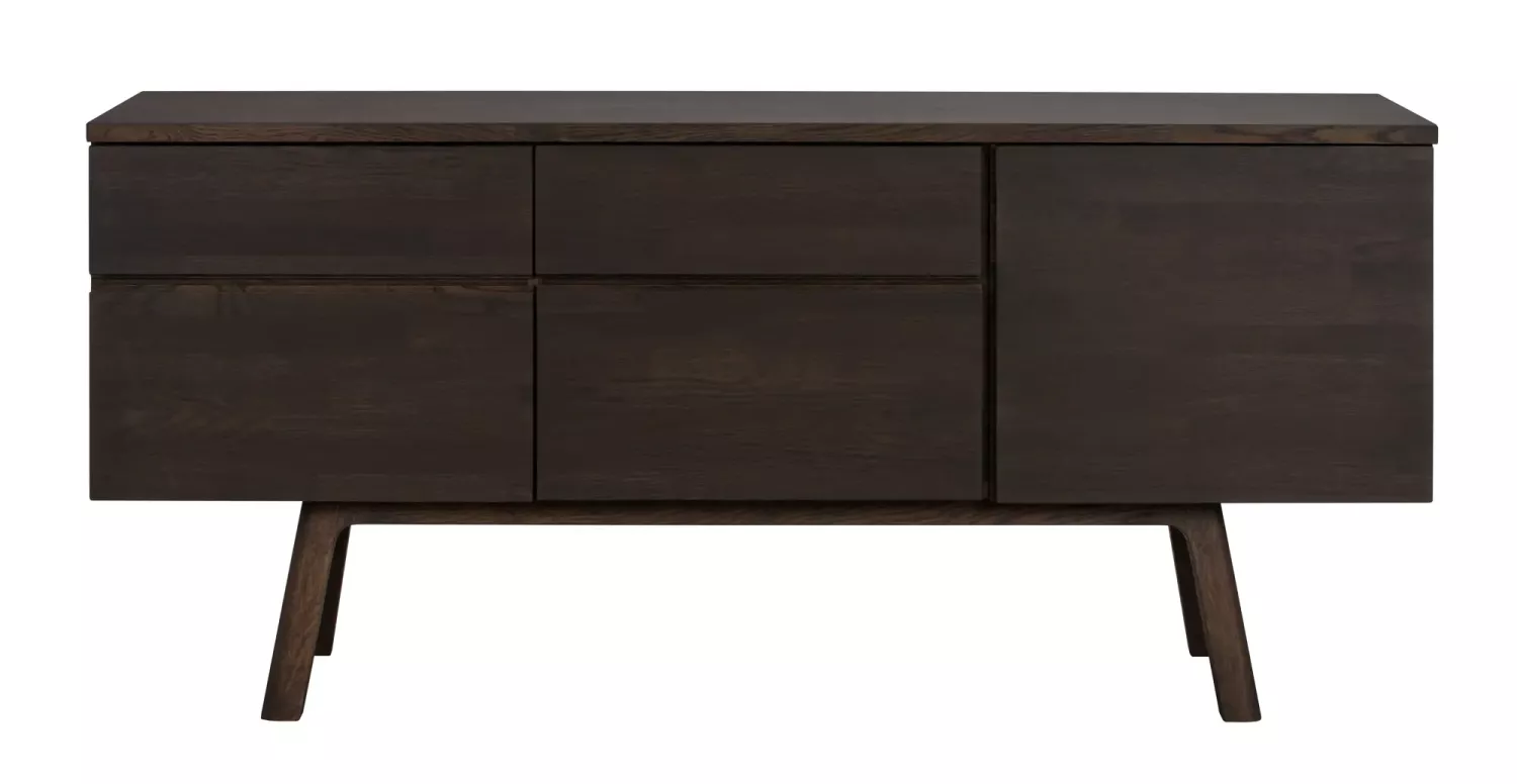 Sideboardet är tillverkat i massiv, fingerskarvad ek, vilket ger en naturlig känsla, stabil konstruktion och lång hållbarhet. Den oljebehandlade ytan framhäver träets struktur och ger ett varmt, levande uttryck som åldras vackert över tid.