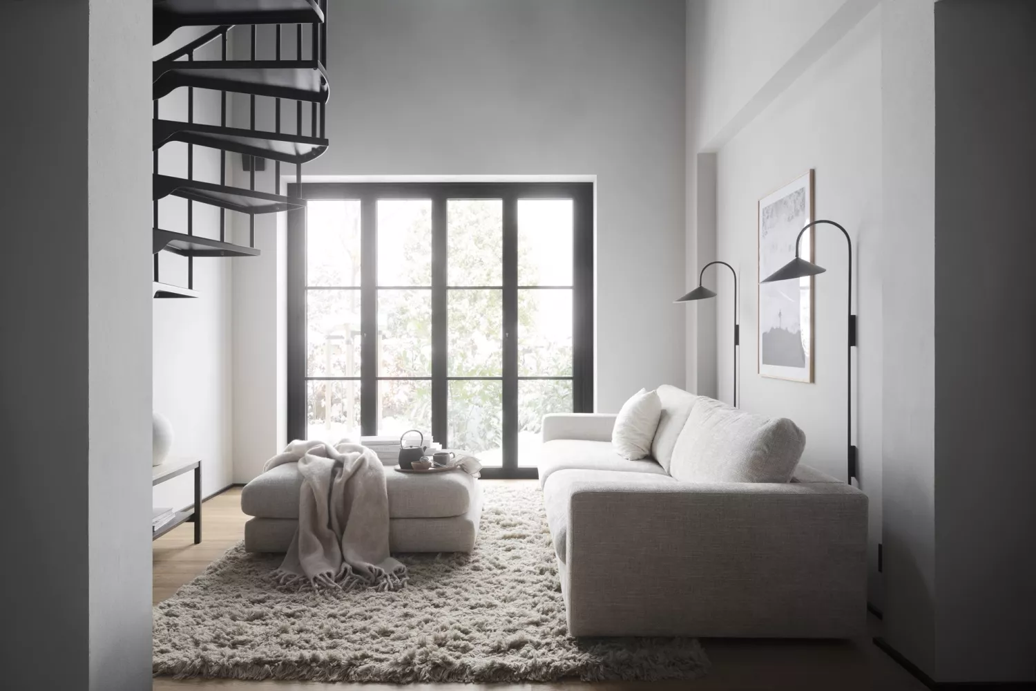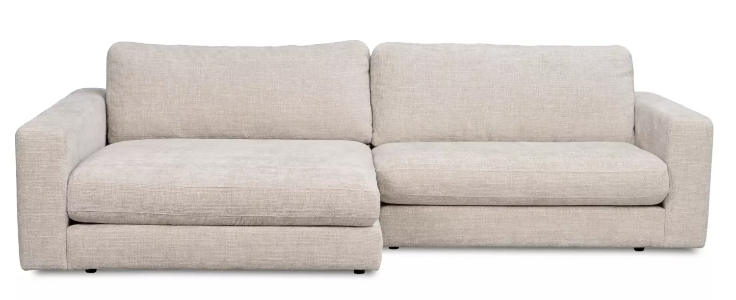 Duncan 3-sitssoffa med schäslong till vänster är en lyxig loungesoffa med generöst sittdjup – fantastiskt skön att sjunka ner i.