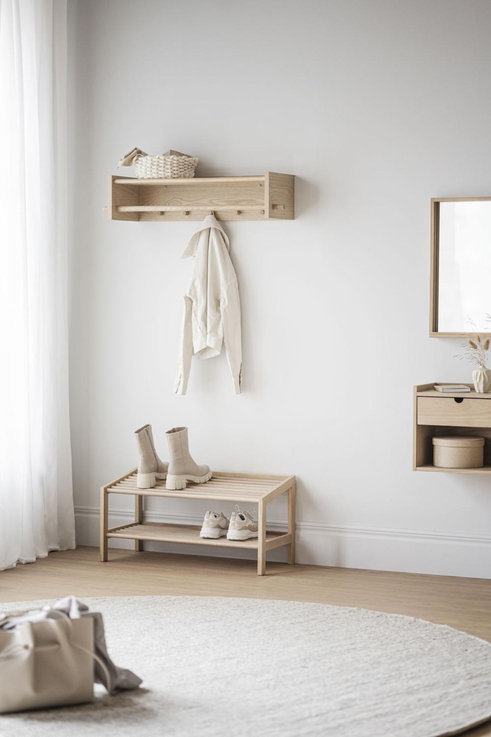 Hillmond skohylla i lackad massiv ek - Unik design, hög kvalitet och skandinavisk elegans i ett. Perfekt för ditt hem!
