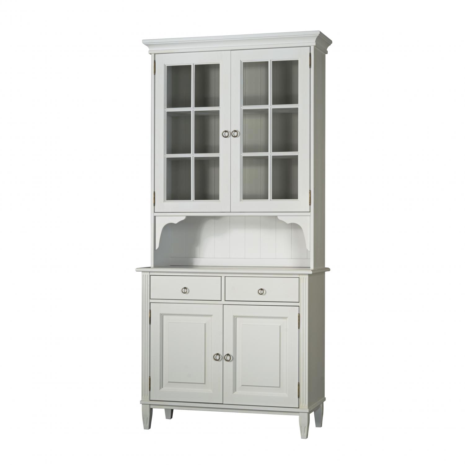 Vitrinen-/ överskåpet kan placeras på en skänk/ underskåp. Vitrinen-/ överskåpet erbjuds i färgen Whitewash och har 2 dörrar och 1+1 hylla.
